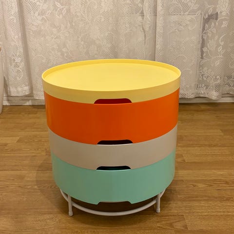 Bordet er laget av solid ABS-plast med metallbase for støtte. Det har fire lag og du kan selv velge rekkefølge.