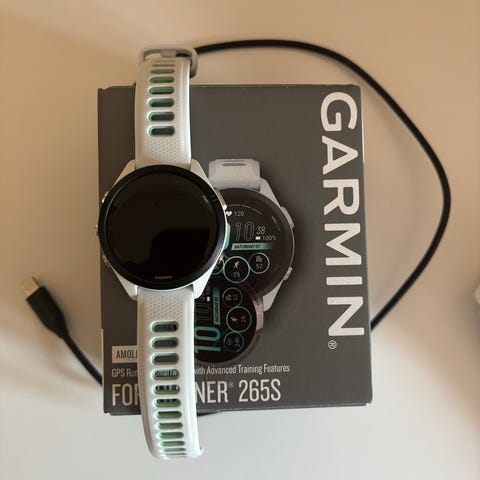 Garmin Forerunner 265 smartklokke med hvit reim. Lite og pent brukt, ingen slitasje merker av betydning. Produktet leveres med original emballasje.