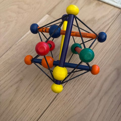 Selger en Manhattan Toy Skwish molekylrangle som fremstår som helt ny. Den lille her hjemme har hatt veldig mange leker og har derfor ikke rukket å leke så mye med alle sammen, så denne er i topp stand. Det er en klassisk og prisvinnende rangle som er flott for utviklingen av motorikken. Kan hentes på Smestad.