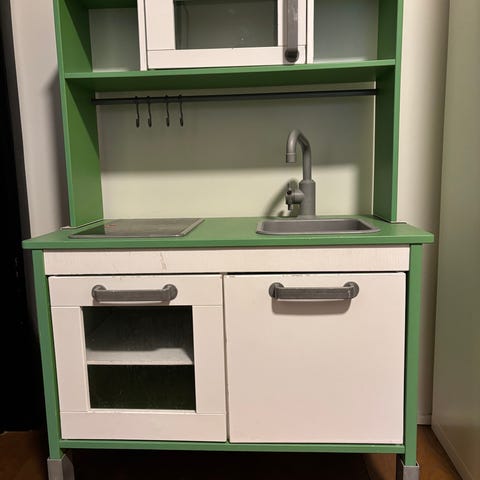 Lekekomfyr selges billig siden barna vil ikke ha den lengre. Godt brukt med noen små skader, men fungerer som den skal. Kan demonteres for å transporteres.