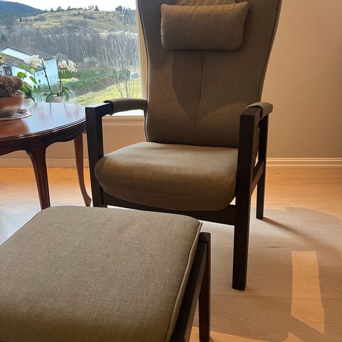2 Stk AW69 hvilestoler, som har stått i leilighet på fjellet, og er ikke mye brukt. Stolene ble kjøpt ny på Anekset på Geilo og kostet ca 40-45.000.- Stolene er i mørkt brunt skinn.