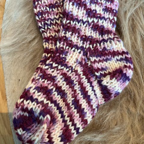 Det samme med strikken nederst på beina. Lar det være åpent, så kan den løsnes eller strammes, hvis det er nødvendig (se bilde)