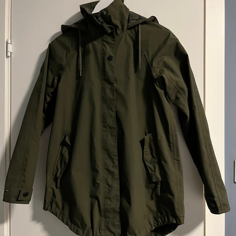 Lyserosa regnjakke fra Vero Moda. Den har revnet i sømmen under begge armene, men det er sydd igjen. Noen bruksmerker men er helt brukelig.