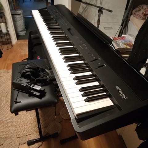 Selger med tungt hjerte min Roland FP 10 digital piano med 88 tangenter i svart farge. med tilbehør inkludert stativ, hodetelefoner, pedal og stol. pris:4500kr( nypris:5500-7700kr), pris kan diskuteres ved fort avgjørelse. sendes ikke , må hentes.