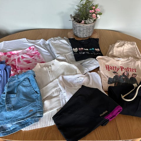 Klær til jente selges samlet. Klærne er rene og hele, fra ulike kjedebutikker. Klærne er i størrelse 158/164, men oppleves litt små i størrelsen, kanskje mer 152/158. (Kjolene er store i størrelsen og er i 146/150)