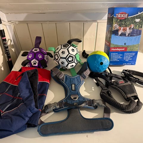 Diverse hundeutstyr fra valp til voksen selges. Har blitt brukt av vår mellompuddel som veide ca 11 kg som voksen. Alt selges til godt under halv pris. Utstyret kan selges enkeltvis for den prisen som er oppgitt på bildene, eller alt utstyret kan selges som en pakke til kr 1000,-