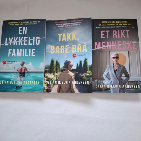 En lykkelig familie, Takk, bare bra og Et rikt menneske selges samlet 🤩 Den første er innbundet og de to andre er pocket. Fin stand på alle tre. Kjøp og les i en jafs! Hentes hos meg på Grefsen 📕📗📘