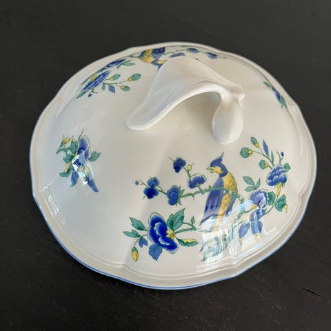 Rörstrand East Indies serveringsskål med lokk blå og hvit porselen.
