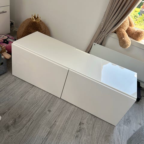 Pent brukt Bestå tvbenk. Har glassplate på toppen.