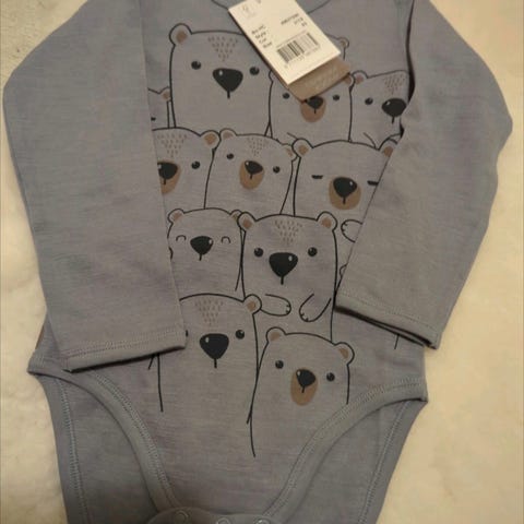 #2: Møkregrå H&M-genser i str. 92, med vintermotiv. Laget av 100% bomull.