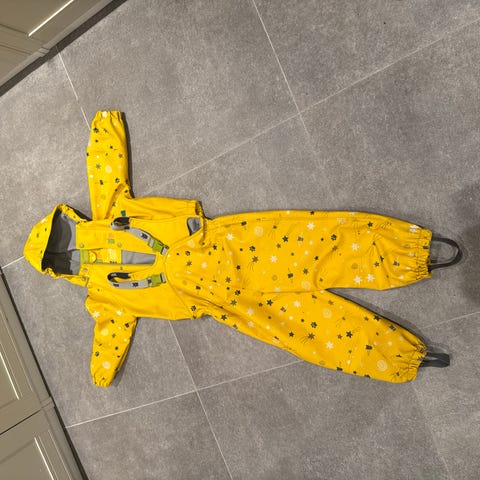 Den grønne selebuksa fra Little Jalo har en tråd som har løsnet på baksida (se bilder). Ellers er klærne i fin stand.