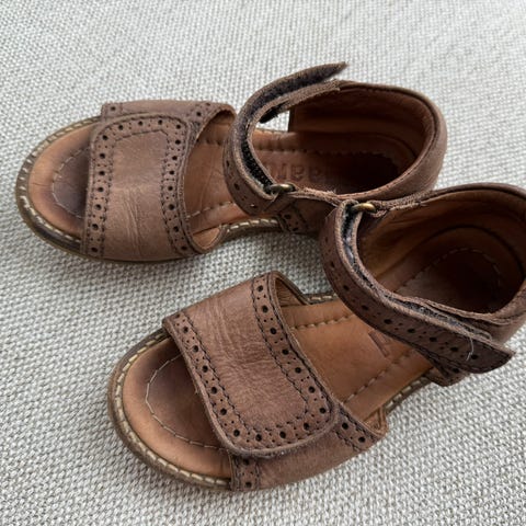 Supersøte sandaler fra Bisgaard. Pent brukt, men gummi på tå har løsnet bittelitt. Mye bruk igjen. Sitter utrolig godt på foten.
