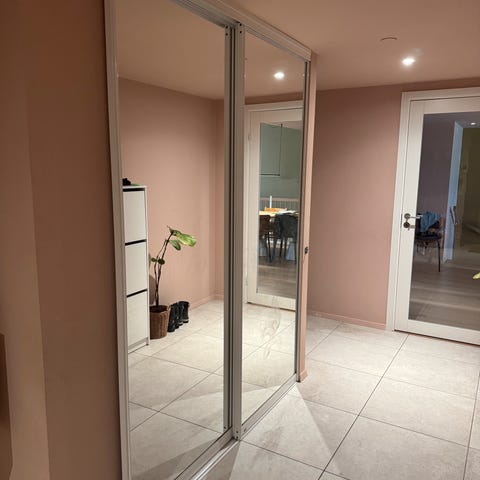 Skyvedører fra Regalux versjon 2, hvite 922x2315 mm. Totalt 4 stk. Det følger også med Regalux tak- og gulvskinne 3600 mm. Kjøpt på Bauhaus juni 2024, nypris 7275kr. Ønskelig at det kjøpes samlet.