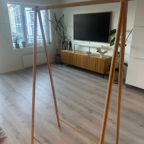 Gammelt, fransk klesstativ som har vært brukt både i butikken vår og som garderobe hjemme i gangen. Det er svært flott og solid. Velter og svaier ikke som mange andre stativer gjør.