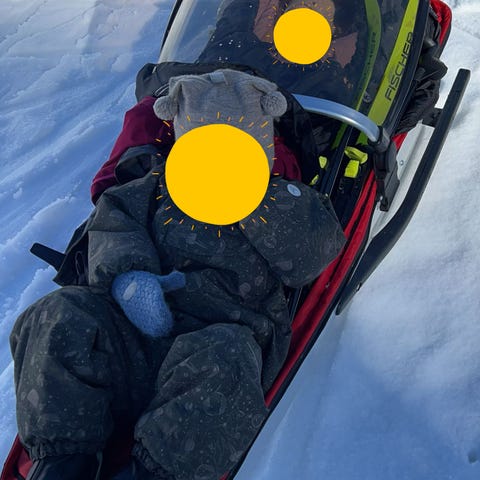 Godt brukt pulk selges til noe rimeligere pris. Flere bilder kommer. Sprekk i vindskjerm, helt nede i siden.