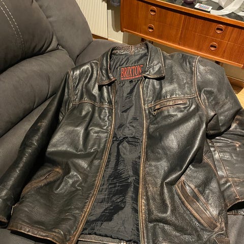 Selger en meget velholdt skinnjakke. Jakken er brukt 5 ganger for mange år siden og har bare tatt plass i skapet etterpå så nå selges den .