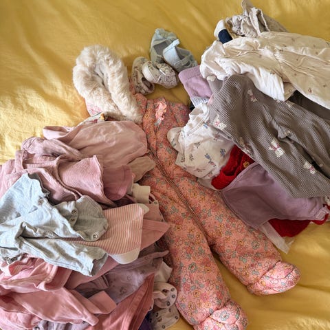 Pent brukte klær til vår og sommer i størrelse 86. sommerpysjer, mange shortser og sommerkjoler, bukser, adidas joggedress, gensere og T-skjorter, UV badedrakt med caps.