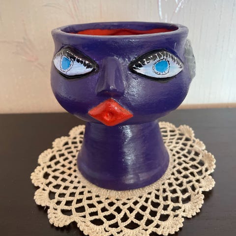 Gammel. Keramisk blomsterpotte med tilhørende sokkel, begge i grønn og brun farge. Potten og sokkelen har et klassisk design og er egnet for innendørs bruk som dekorasjon eller planteholder.