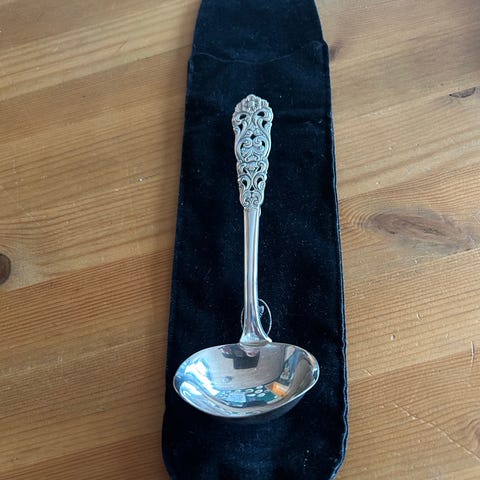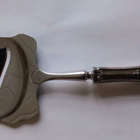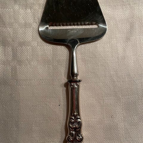 Ostehøvel laget i sølv med dekorativt håndtak mønster Valdres . Leveres i original eske med rød fløyelsfôring.