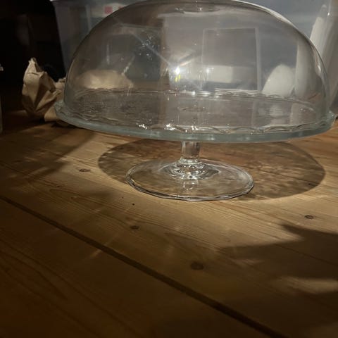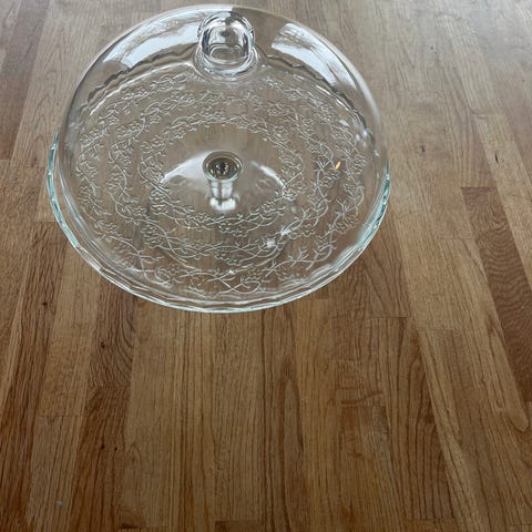 IKEA ARV BRÖLLOP serveringsfat laget av klart glass med dekorative mønstre. Produktet inkluderer et fat med lokk, egnet for servering og oppbevaring av matvarer.