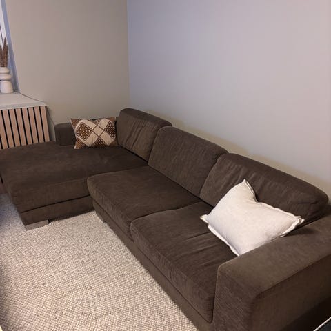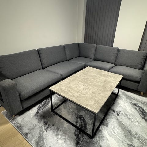 Pent brukt og skadefri hjørnesofa selges på grunn av flytting. Sofaen er svært behagelig å sitte i og lett å holde ren. Enkel å støvsuge, og trekkene er avtagbare og kan maskinvaskes..