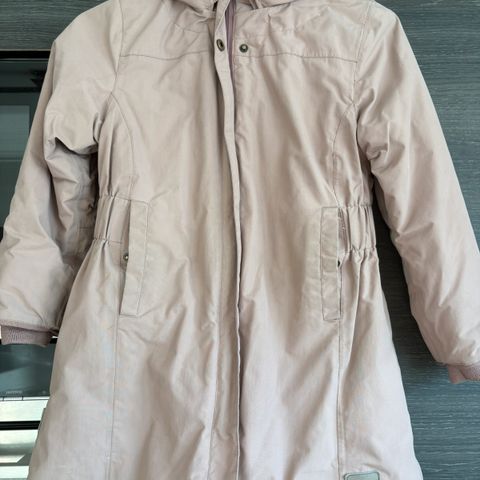Varm og flott MarMar Copenhagen vinterjakke i størrelse 116/122 (6/7 år) for jente. Jakken har en svak a-fasong, og når litt nedover lårene. Den er god og varm, perfekt til vinteren.