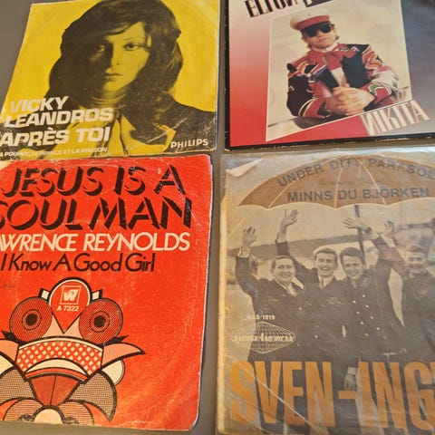 Diverse vinylplater, blant annet ABBA, Jim Reeves, Johnny Cash, Cliff Richard, Saturday night fever, Simon and Garfunkel, Hifi karajan 1-4