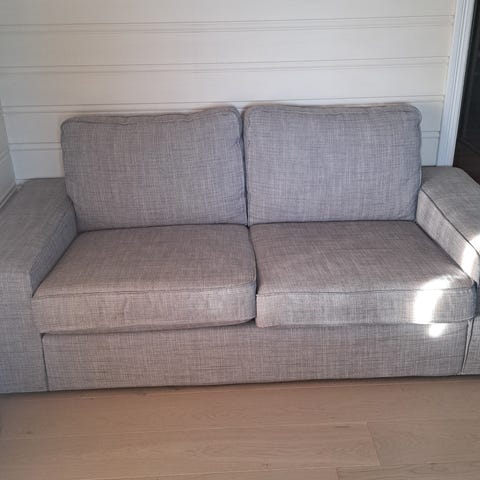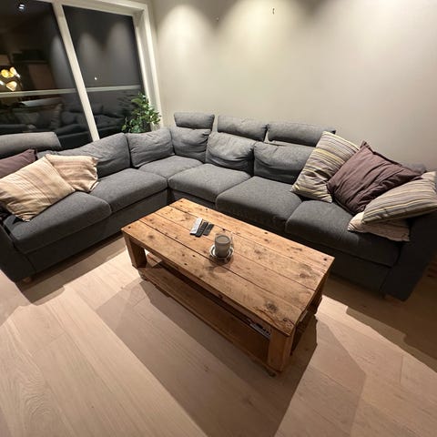 Pent brukt 3-seters sofa med sjeselong. Tidligere var det et trekk som var ødelagt, men det er nå helt i orden. Sofaen er komfortabel, solid og i veldig god stand. Selges på grunn av flytting, må hentes innen 26. januar.