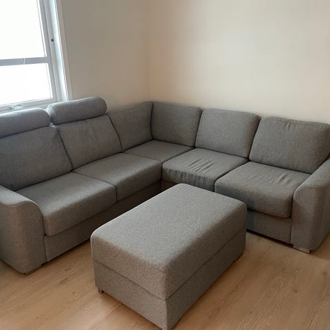 3-seters sofa med sjeselong – som ny, uten skader. Må selges før 26 januar.