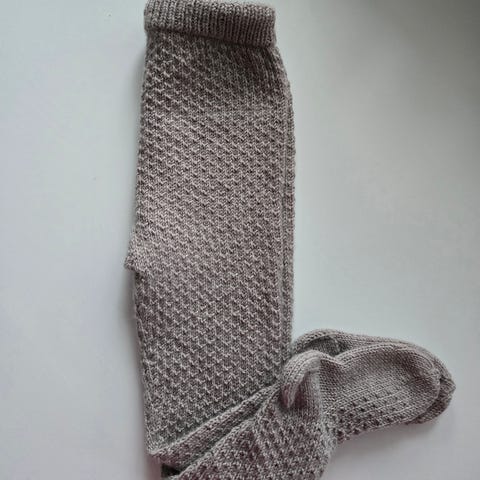 En ny nydelig håndstrikket barnelue til salgs til ca 1-2 år barn. Det er basse lue med en søt knute på toppen fra Klompelompe serie. Strikket i tynn 100 % merinoull. Kløfri og kan vaskes på 40 C på ullprogram.