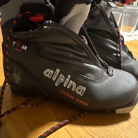Alpina T4 skisko i størrelse 34 med rød og svart farge. Overmateriale i syntetisk materiale, foret med tekstil, og såle i gummi. Skiskoene er utviklet for langrenn og gir støtte og komfort under bruk.