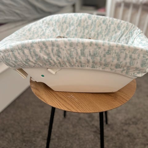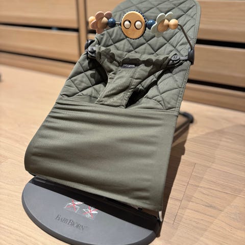 Pent brukt vippestol med leke. Trekket er nyvasket. Ser at jeg har satt det litt skjevt, men det er enkelt å rette på 😊 Må hentes.