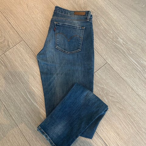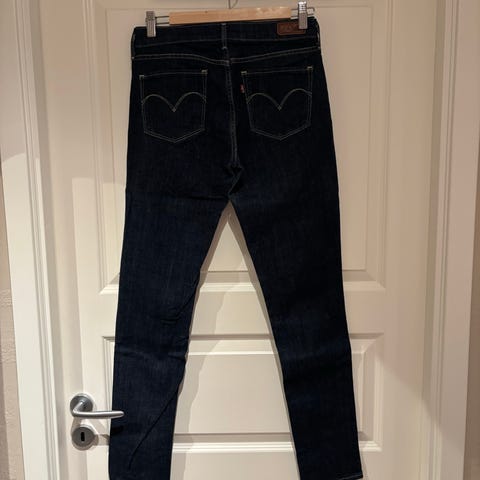 Levi's jeans i størrelse S for kvinner, svart farge og laget av denim. Har midje størrelse W27.