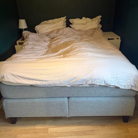 Pent brukt dobbelseng gis bort, overmadrass medfølger om ønskelig, men har noen flekker. Madrassen er relativt myk så perfekt om man ikke liker for harde senger.