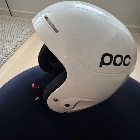 POC skihjelm i rosa med briller. Hjelmen har flere ventilasjonsåpninger og justerbar stropp. Goggles har farget glass. Pent brukt. Noen bruksmerker på hjelmen.