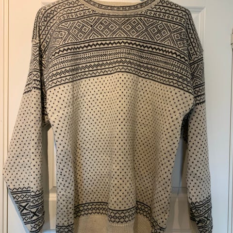Pent brukt ullgenser str XL i merket Nordlys of Norway. Kjøpt i november og brukt 5-6 ganger, selges da gubben har kjøpt en til i mindre str. Ingen tydelige bruksmerker. God og varm. Nypris 1649,-