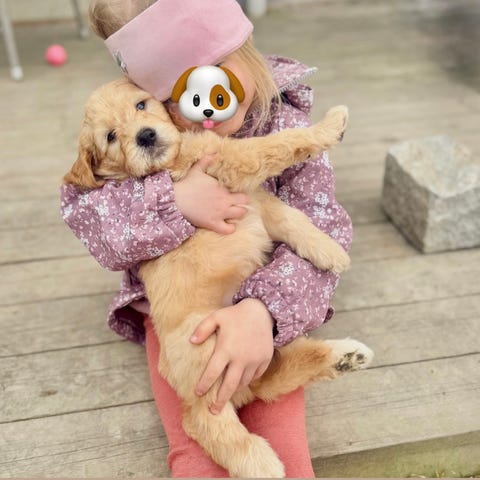 Han er en trygg og glad gutt som vokser opp med stor frihet i landlige omgivelser. Alle hundene her er en selvfølgelig del av familien og både voksne og valper får mye kos. Han er en skikkelig kosegutt som elsker å sitte på fanget og han liker å følge med på det meste med sitt vakre blikk.