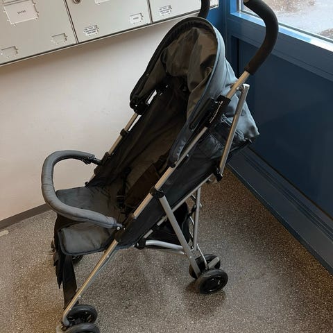 Vognen er brukt, men i god stand. Kan legges sammen for reise.