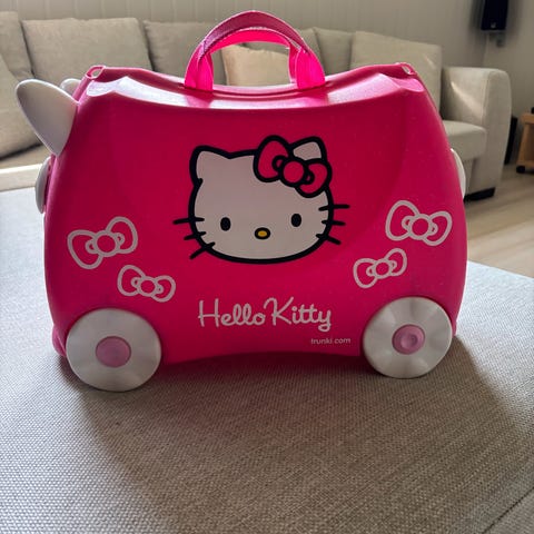 Hello Kitty barnas koffert i rosa farge og i marihøne 🐞🎀Kofferten har hjul og håndtak for enkel transport. Marihøne er pent brukt, selges for: 400,-