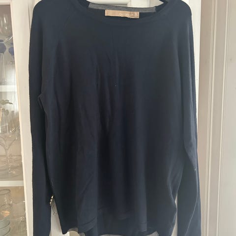 Mørk blå genser fra Culture. Normal i størrelsen. Splitt i sidene nederst.