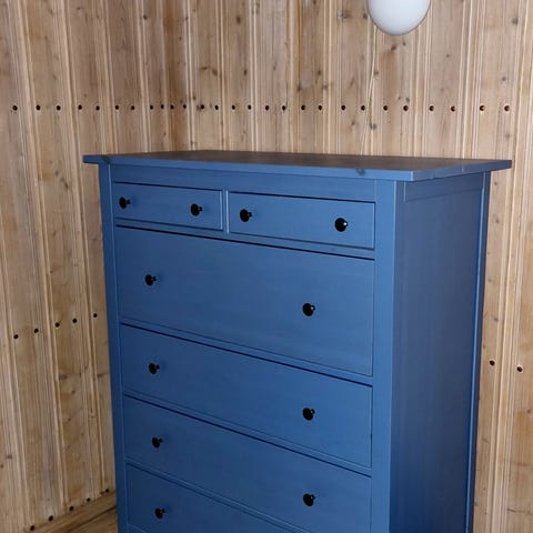 Pent brukt Hemnes kommode med 6 skuffer. Har enkelte bruksmerker som vist på bildet, og er litt vaklete men ellers i god stand.