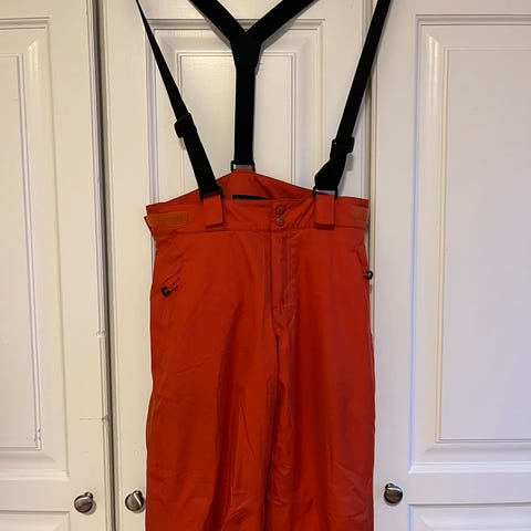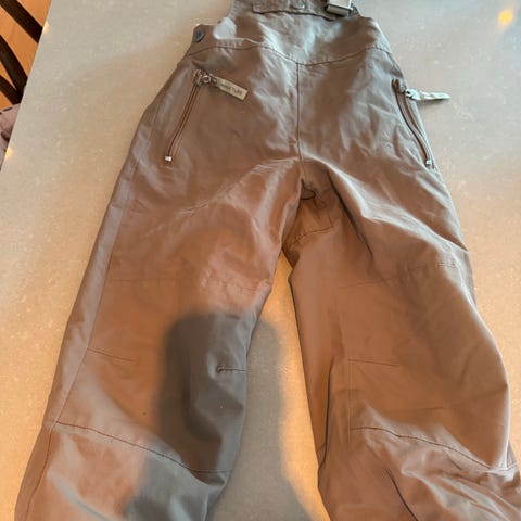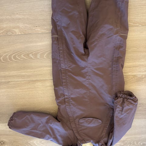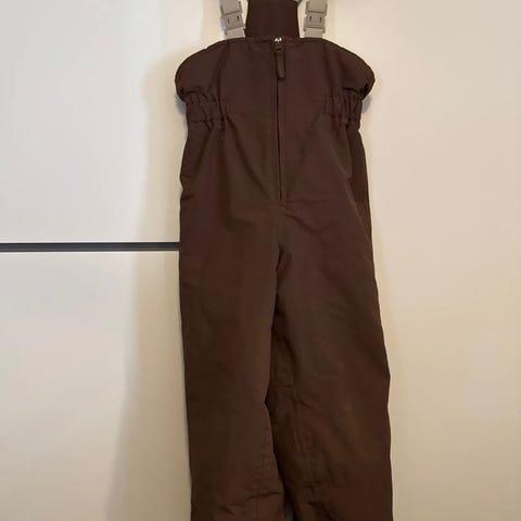 Wheat barn bukse i størrelse 128, brun farge, laget av polyester. Passer for både gutter og jenter. Buksen har justerbare seler og elastisk midje for bedre passform. Litt slitt enkelte steder, se bilder.