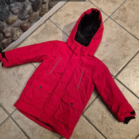 Rød vinterjakke str. 110.