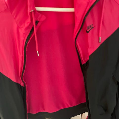 Jakke fra Nike for dame i størrelse M. Jakken er svart og har hette, glidelås foran og to lommer med glidelås. Egnet for ulike aktiviteter innen sportstypen Annet.