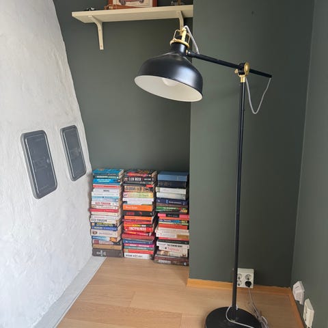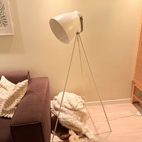 Fin gulvlampe/stålampe fra IKEA selges. Estimerer 150cm høy. Lyspære følger med. Kjøpte lampen ny i 2025✨