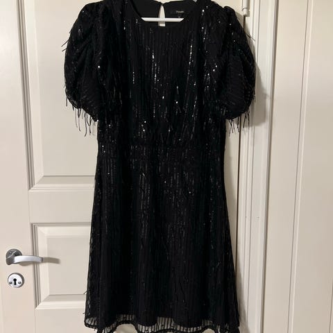 Chiffon kjole i merket Donna i størrelse 40. Farhen lys lilla. Kjolen har v-formet utringning, nydelig passform og korte, vide ermer, egnet for formelle anledninger. Perfekt for bryllup