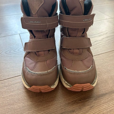 Okaki vintersko til salgs. Litt slitt bak, men mye bruk igjen! Størrelse 38, men okaki er små i størrelsen. Nypris er 1200 kr