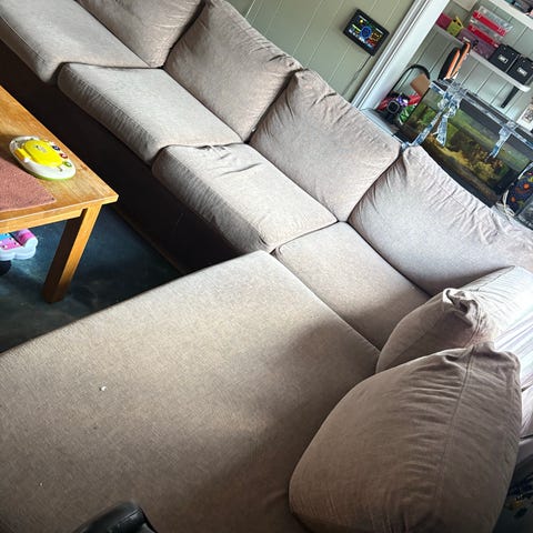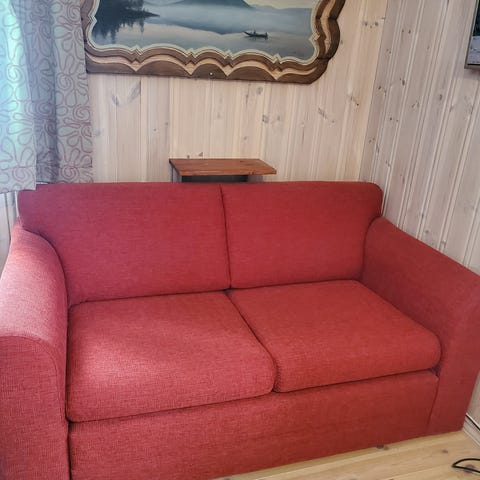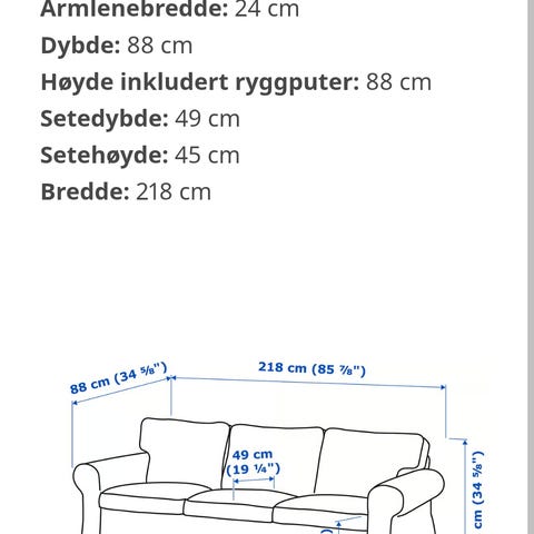 Pent brukt Ektorp 3-seters sofa uten trekk gis bort. Forskjellige trekk til hele denne kan kjøpes hos Ikea. Den store fordelen med disse er at de kan vaskes i maskin.