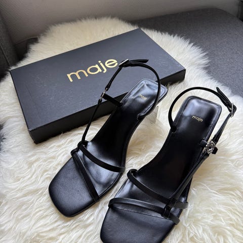 & Other Stories Hæler i størrelse 39, svart farge. Skoene har en åpen design med tynne stropper og firkantet tå. Materialet er ikke spesifisert. Egnet for formelle og uformelle anledninger.