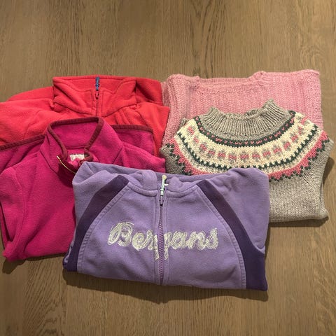 Pent brukt, noe flekker på den blå genseren, mulig det går av med litt flekk såpe😊